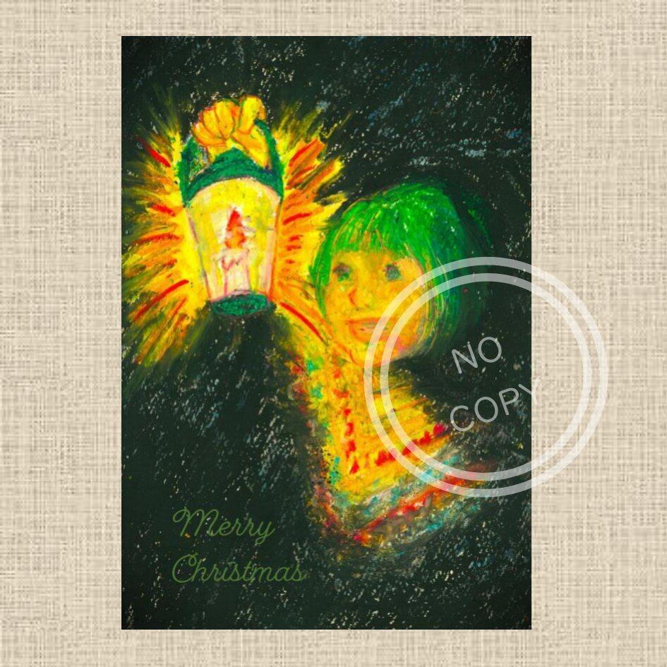 デザイン面:ランプを持った女の子「Merry Christmas」
